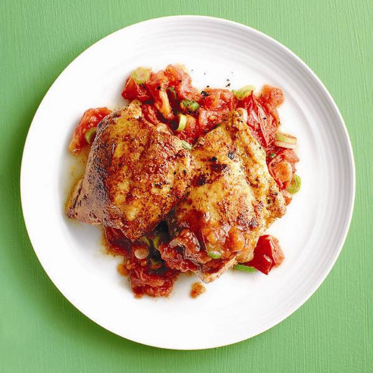 Finger-lickin Cajun Chicken With Butter, Skinless Boneless Chicken Thighs, Cajun Seasoning, Tomatoes, Green Onions
