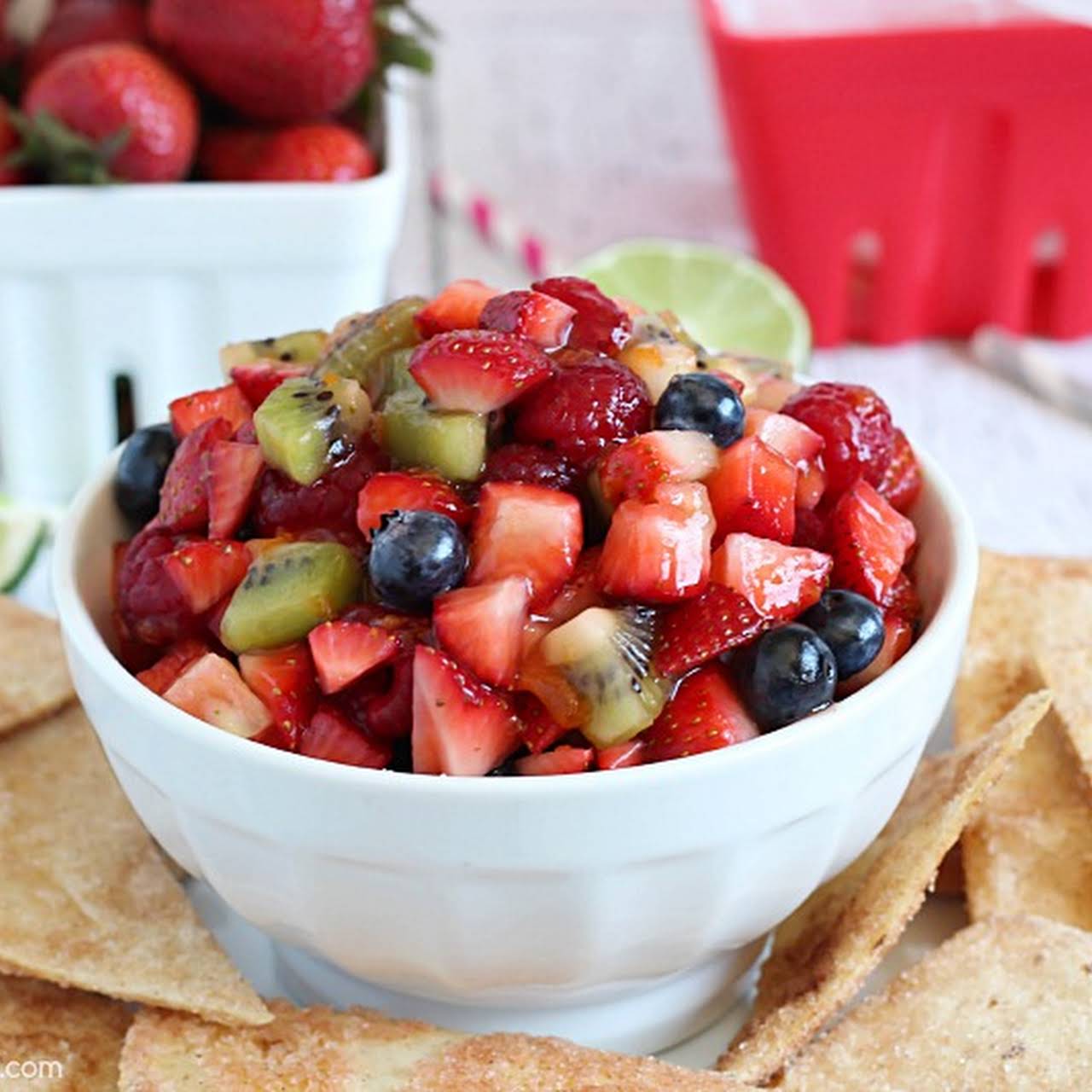 Fruit Salsa And Homemade Cinnamon Chips taking into consideration Salsa, Strawberries, Kiwi, Blueberries, Raspberries, Apricot Preserves, Chips, Flour Tortillas, Cooking Spray, Sugar, Cinnamon